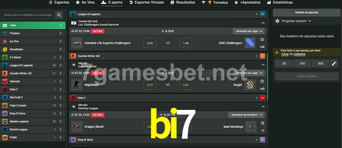 O bi7 oferece uma grande seleção de opções de apostas em e-sports com probabilidades competitivas